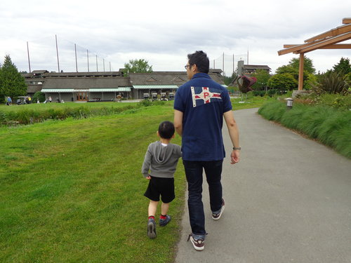 等餐點時, 爸爸帶米粒出來晃晃. 當然又上演米粒賴在地上的戲碼! 因為他不要讓老公牽, 要自己去跑, 但是旁邊就有小湖, 老公很怕這小人會掉進水裏, 這小人掙脫不了爸爸, 就只好耍賴!